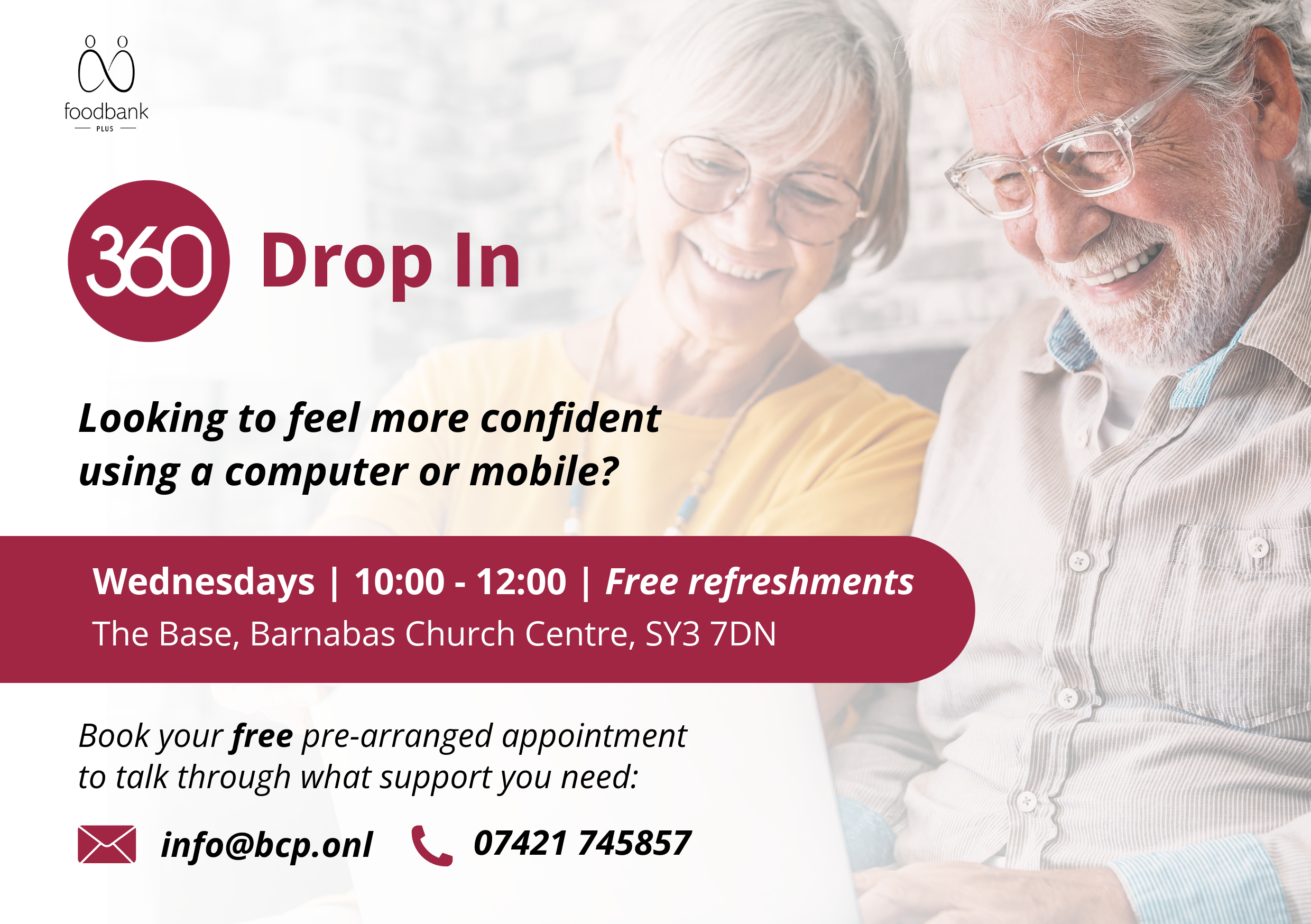 Opening times for clients to attend Shrewsbury Foodbank at Barnabas Church Centre, SY3 7DN.